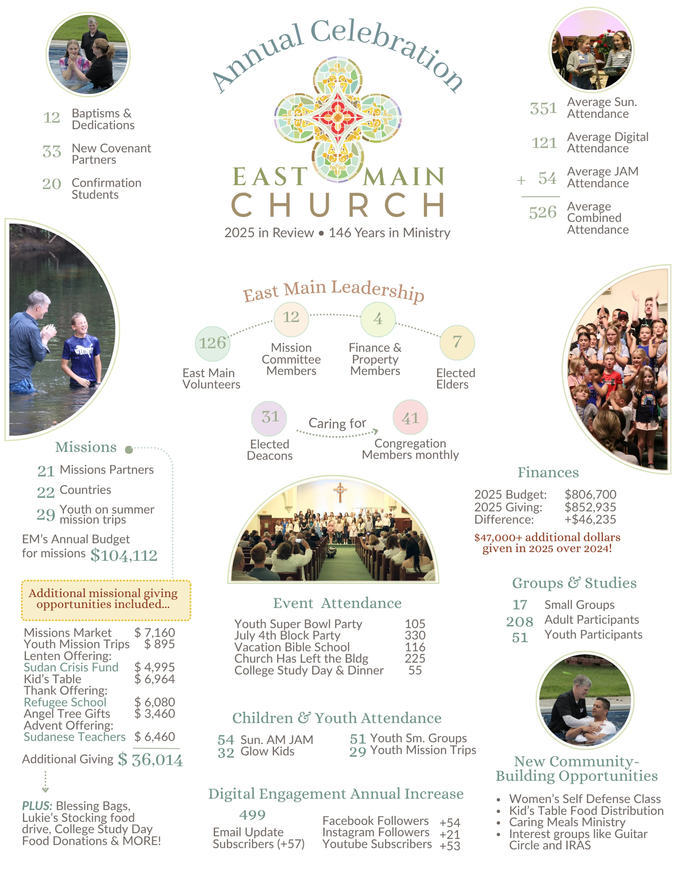 Each year we celebrate what God has done in our congregation with a gathering, grateful for the ministry He has accomplished among us. Below are some facts, figures and video of our 2025 ministries to help you get acquainted with who we are.